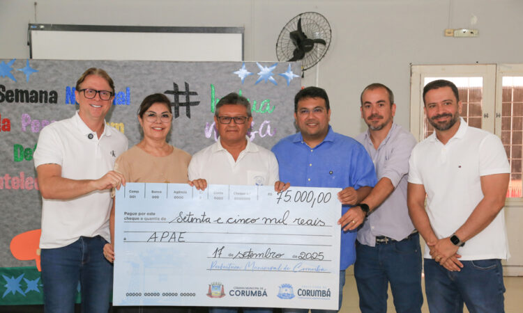 A Prefeitura de Corumbá repassou R$ 350.083,00 à Associação de Pais e Amigos dos Excepcionais (APAE). O valor inclui R$ 275.083,00 de emendas parlamentares apresentadas pelos vereadores Élio Júnior e Samyr Ramunieh, além do ex-vereador Daniel Brambilla, e R$ 75 mil referentes à primeira parcela do Fundo Municipal de Investimentos Sociais (FMIS). A entrega ocorreu na manhã desta quarta-feira, 17 de setembro, durante solenidade na sede da entidade, no bairro Maria Leite. O ato contou com a presença do prefeito Dr. Gabriel Alves de Oliveira e da vice-prefeita e secretária municipal de Assistência Social e Cidadania, Bia Cavassa.