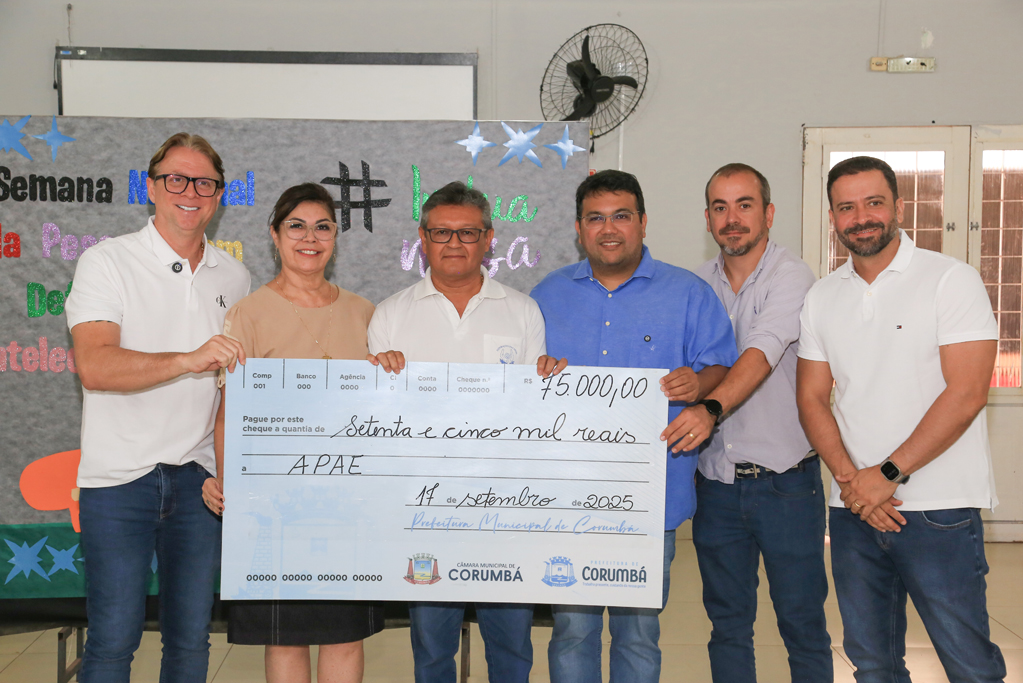 A Prefeitura de Corumbá repassou R$ 350.083,00 à Associação de Pais e Amigos dos Excepcionais (APAE). O valor inclui R$ 275.083,00 de emendas parlamentares apresentadas pelos vereadores Élio Júnior e Samyr Ramunieh, além do ex-vereador Daniel Brambilla, e R$ 75 mil referentes à primeira parcela do Fundo Municipal de Investimentos Sociais (FMIS). A entrega ocorreu na manhã desta quarta-feira, 17 de setembro, durante solenidade na sede da entidade, no bairro Maria Leite. O ato contou com a presença do prefeito Dr. Gabriel Alves de Oliveira e da vice-prefeita e secretária municipal de Assistência Social e Cidadania, Bia Cavassa.