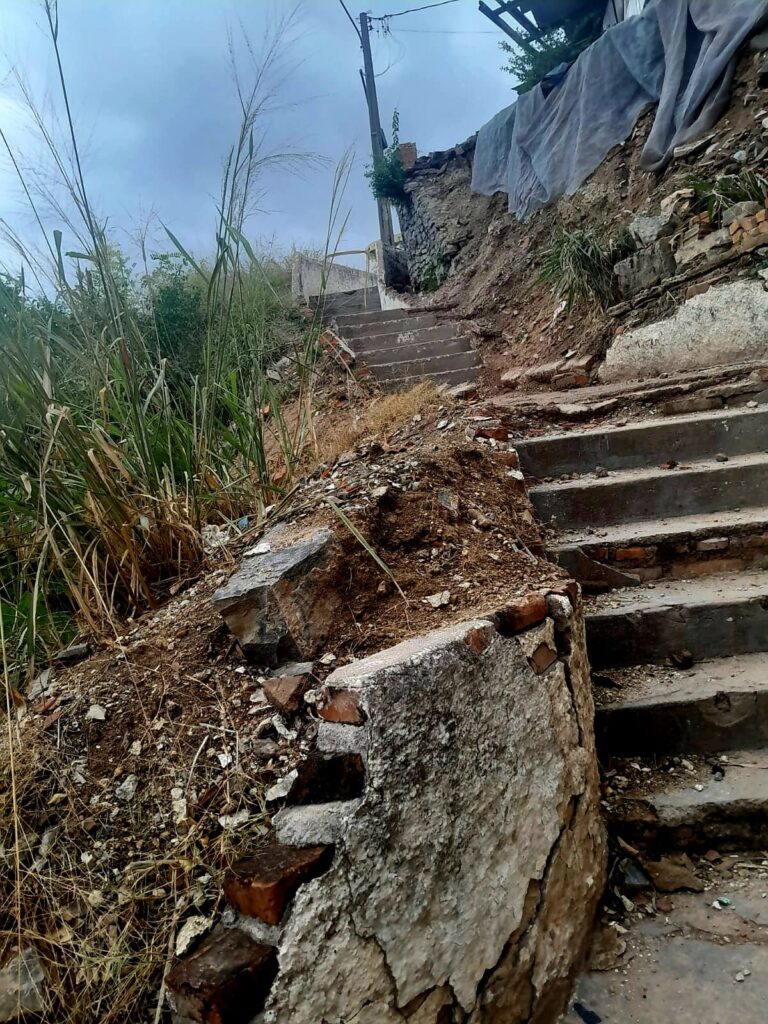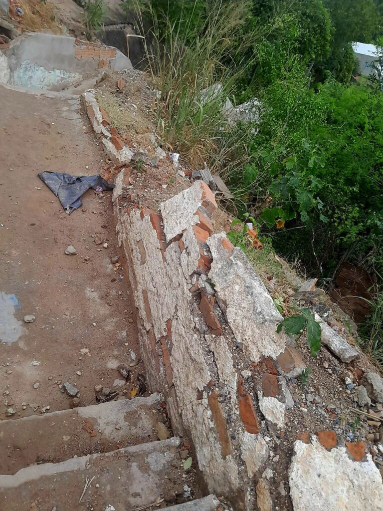 Ressaltou que a escadaria está em estado avançado de deterioração, apresentando riscos iminentes à segurança da população. No documento apresentado durante a sessão, Bira anexou imagens do local que demonstram o comprometimento estrutural dos muros de contenção, com rachaduras, desmoronamentos parciais, erosão do solo e exposição de materiais soltos, além do desgaste visível nos degraus e guarda-corpos laterais.