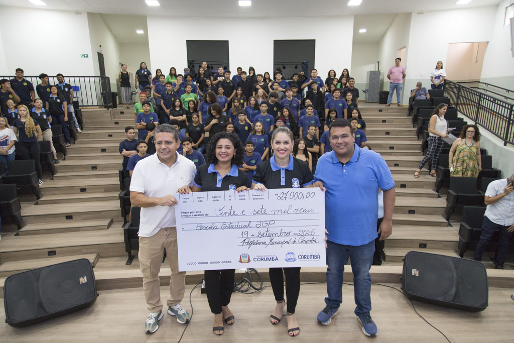 A Prefeitura de Corumbá entregou nesta sexta-feira, 19 de setembro, R$ 27 mil à Escola Estadual Júlia Gonçalves Passarinho (JGP). A cerimônia contou com a presença do prefeito Dr. Gabriel Alves de Oliveira e fez parte das comemorações pelos 247 anos de fundação de Corumbá. O repasse, resultado de emenda parlamentar do vereador Alexandre Vasconcellos, foi feito na sede da instituição, localizada na área central da cidade.