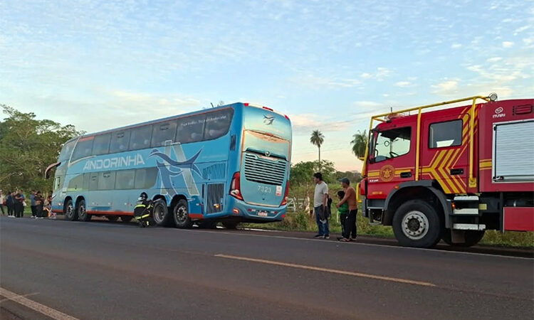 Ônibus da Andorinha que saiu de Corumbá com 53 passageiros tem princípio de incêndio na BR-262