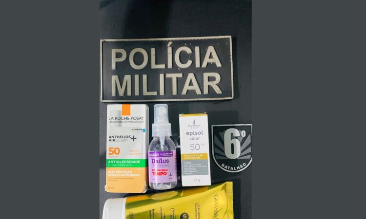 No local, os produtos subtraídos foram apresentados, incluindo itens de higiene e cosméticos, que foram apreendidos e encaminhados à Delegacia de Polícia Civil para as providências legais cabíveis.