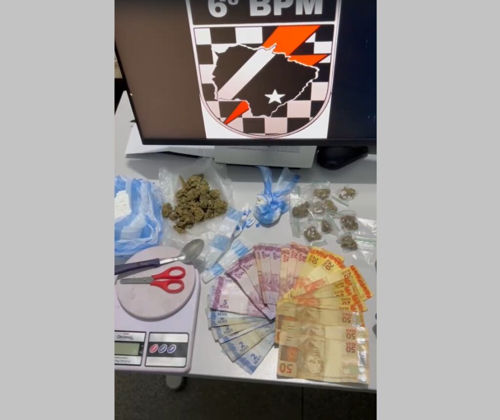 Durante a incursão, os policiais flagraram três indivíduos preparando drogas para venda. No local, foram encontrados utensílios utilizados na manipulação e embalagem de entorpecentes, além de 24g de substância análoga à cocaína, 32g de substância análoga à maconha e R$ 80 em dinheiro.
