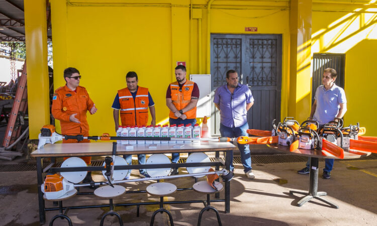 A aquisição contempla cinco motosserras pequenas, três médias, uma de grande porte, uma roçadeira destinada à confecção de aceiros para prevenir incêndios florestais e uma motopoda capaz de realizar cortes em galhos a até cinco metros de altura sem a necessidade de escalada em árvores.