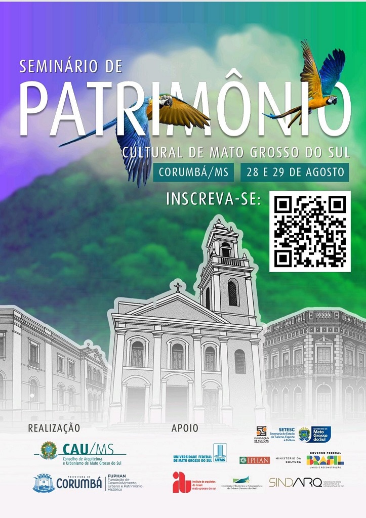 A Câmara Temática de Patrimônio do Conselho de Arquitetura e Urbanismo de Mato Grosso do Sul (CAU/MS) realiza, nos dias 28 e 29 de agosto, o Seminário de Patrimônio Cultural de Mato Grosso do Sul, em parceria com a Fundação de Desenvolvimento Urbano e Patrimônio Histórico de Corumbá.