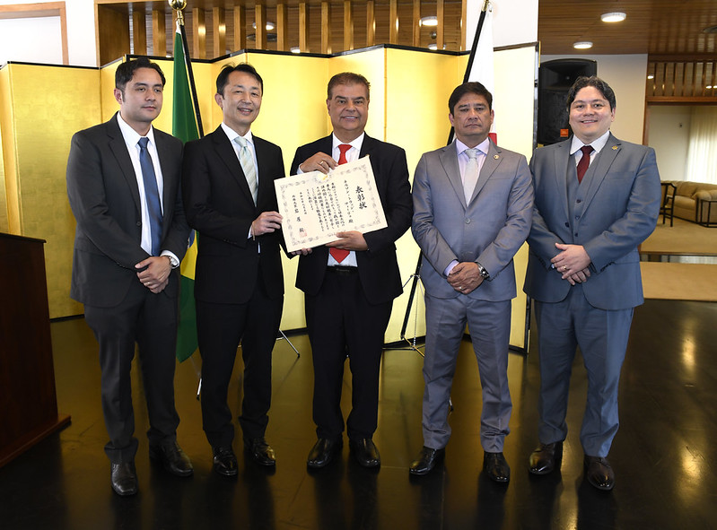 O parlamentar recebeu o Diploma de Honra ao Mérito do Ministro dos Negócios Estrangeiros do Japão, distinção concedida pelo governo japonês e entregue pelo embaixador Teiji Hayashi, em reconhecimento às suas contribuições para o fortalecimento das relações entre Brasil e Japão.