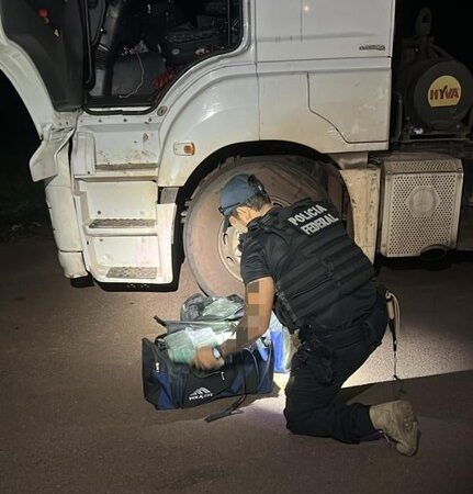 A Polícia Federal apreendeu, nesta segunda-feira (9), aproximadamente 69 kg de cocaína, após a abordagem de um caminhão carregado com minério de ferro, na BR-262, no município de Terenos. A ação resultou na prisão em flagrante do condutor do veículo.