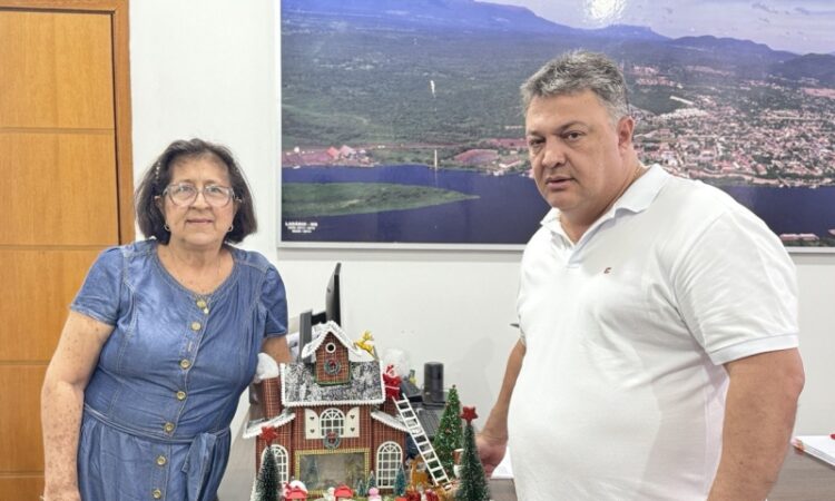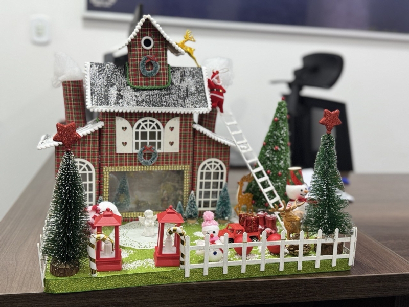 Na tarde da última sexta-feira (07), a artesã Suely Santos Salles esteve no gabinete do prefeito Munir Ramunieh para entregar uma decoração natalina confeccionada de forma totalmente artesanal e com o uso de materiais recicláveis. A peça, que representa uma charmosa casa decorada para o Natal, foi feita a partir de itens simples do dia a dia, como caixinhas de leite, embalagens de suco e rolinhos de papel higiênico.