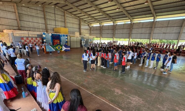 A solenidade contou com a presença do prefeito Munir Sadeq Ramunieh e da secretária municipal de Educação, Fernanda Salgado da Silva da Cunha Borges, além de equipes gestoras e representantes das escolas. Após a composição da mesa de honra, as delegações das nove unidades escolares entraram na quadra, organizadas com plaquetas de identificação e trajes oficiais.