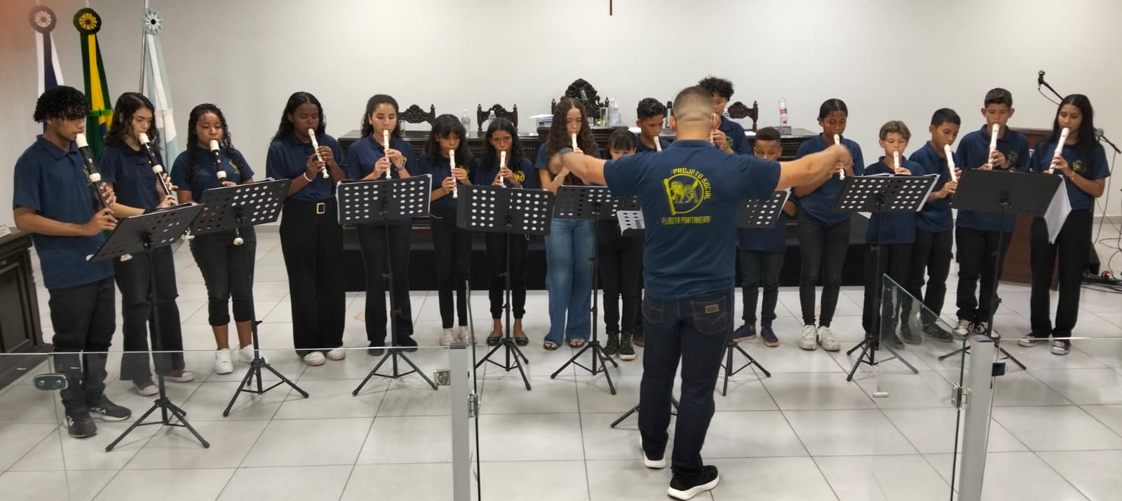 Encerrando a sessão, os alunos do Projeto Flauta Pantaneira realizaram uma bela apresentação musical, emocionando o público presente e homenageando o maestro. A performance simbolizou o carinho e o reconhecimento dos jovens pelo trabalho e dedicação de Assuélio ao longo de sua trajetória em Ladário.