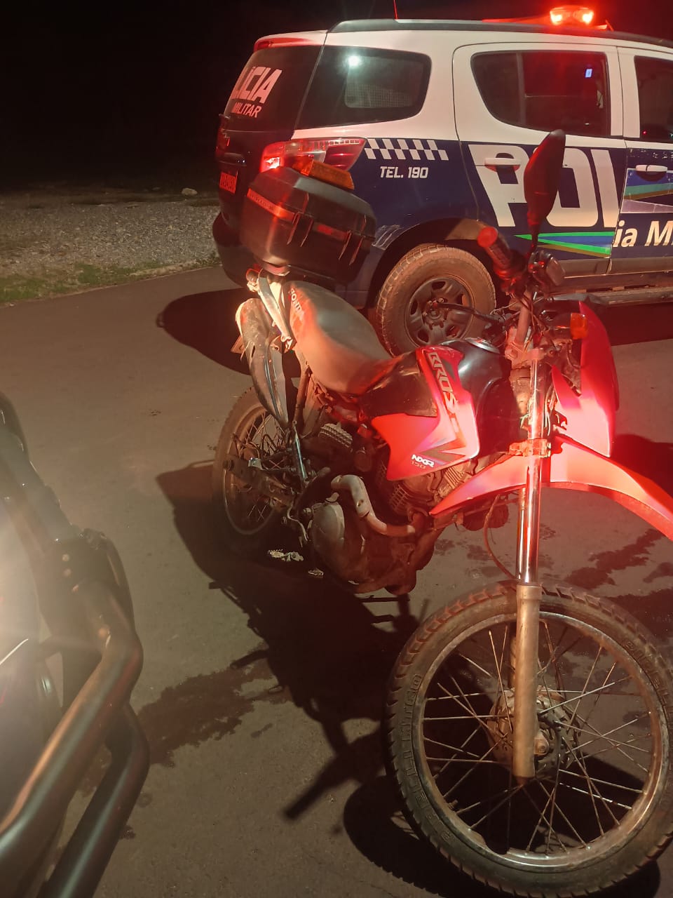 Após acompanhamento tático, o condutor perdeu o controle do veículo e caiu, momento em que foi abordado e identificado.