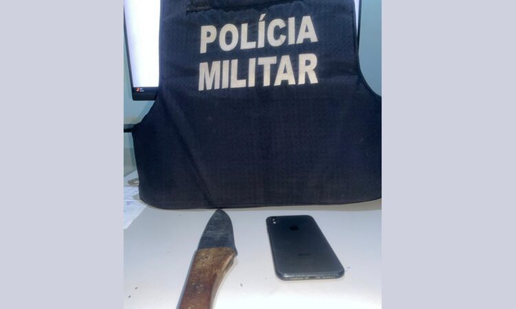 Com base nas características e informações repassadas, a equipe da Polícia Militar iniciou diligências imediatas e localizou o suspeito ainda em posse da faca utilizada no crime e do celular roubado, que foi prontamente reconhecido pela vítima.