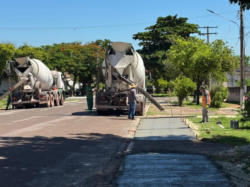 Os serviços incluem a preparação do solo e a concretagem das novas calçadas, garantindo mais segurança aos pedestres e organização dos espaços públicos. A execução ocorre de forma planejada, com acompanhamento técnico, buscando minimizar transtornos e assegurar a qualidade do trabalho.
