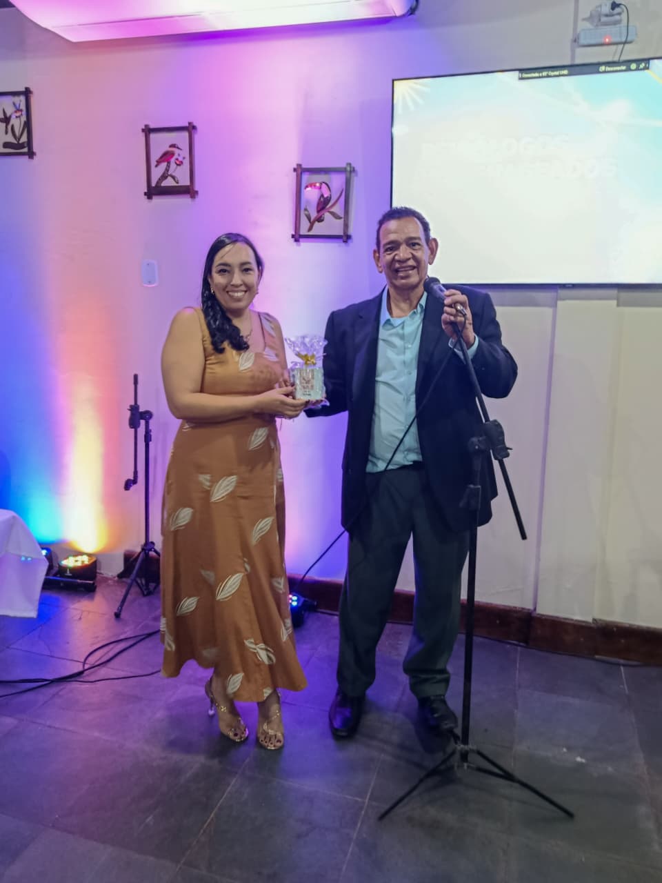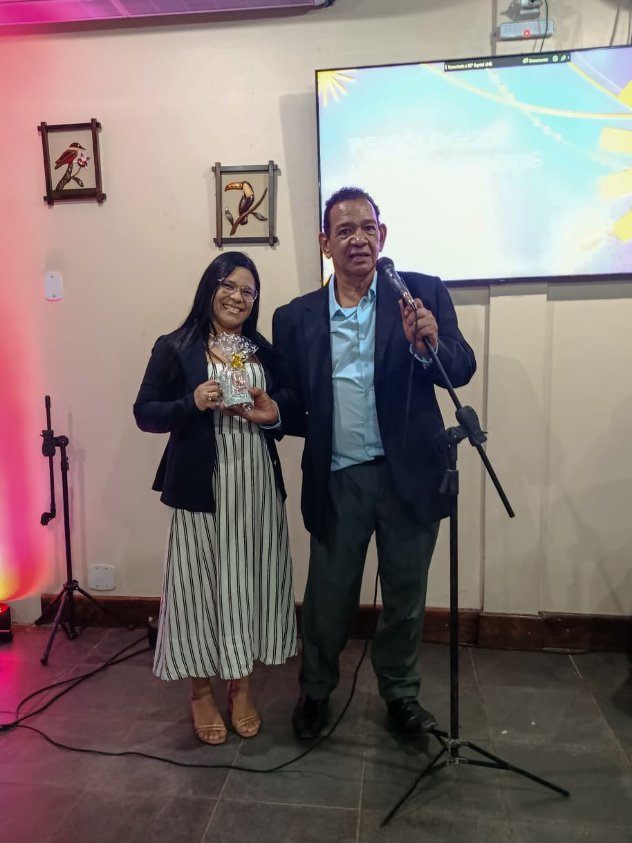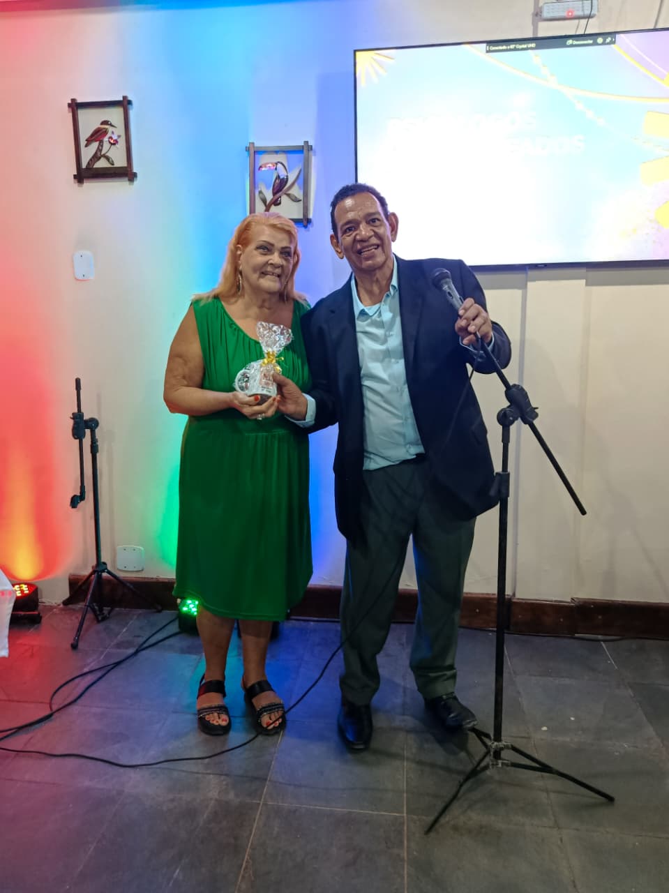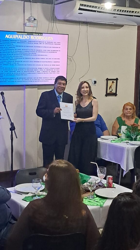 Homenageados da confraternização de 2024 fizeram entrega do reconhecimento aos colegas neste encontro. O Psicólogo Wilson Ferreira de Melo, professor aposentado do Curso de Psicologia desde os primeiros anos de sua implantação, entregou o certificado à Psicóloga Carolini Cássia Cunha, professora e atual coordenadora do Curso de Psicologia do CPAN/UFMS. As Psicólogas Elaine Alves Maciel da Silva, Delari Maria Bottega, Rosa Marília Batista de Moraes, Lila Dara de Barros Pereira, Rosa Balbina Dias, Genise Assad de Paula e Mathilde Monaco, e os Psicólogos Aguinaldo Rodrigues e Juvenal Ávila de Oliveira receberam também o reconhecimento de seus colegas de profissão.