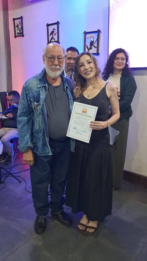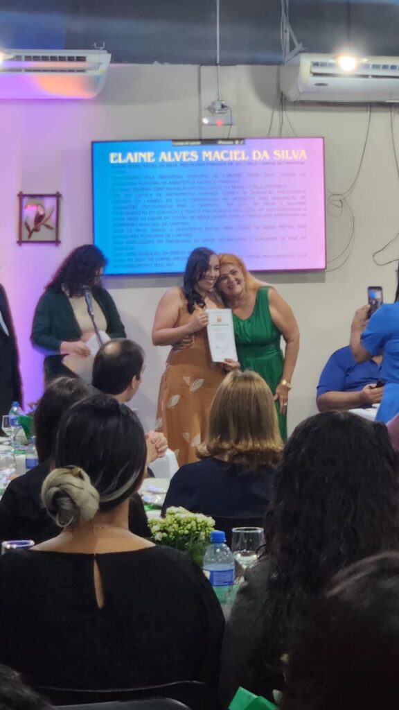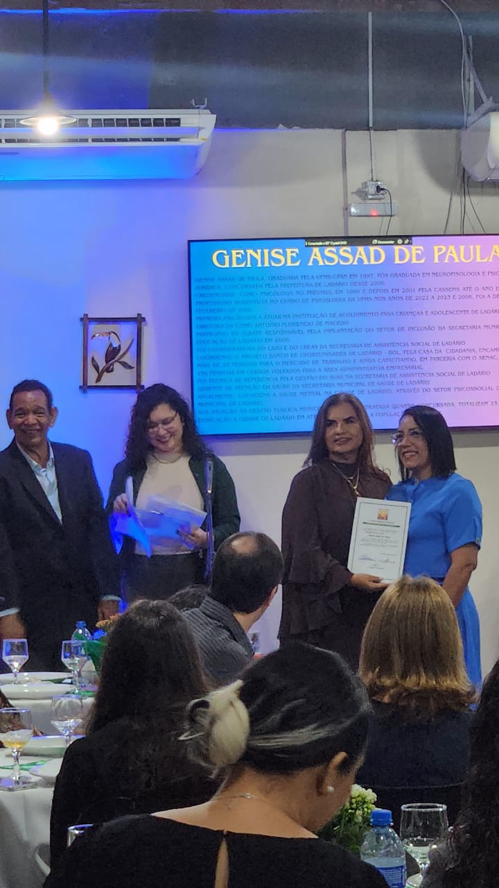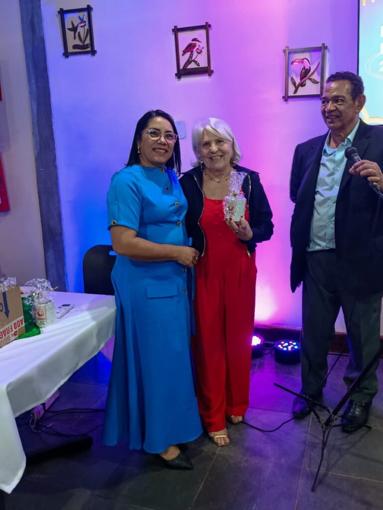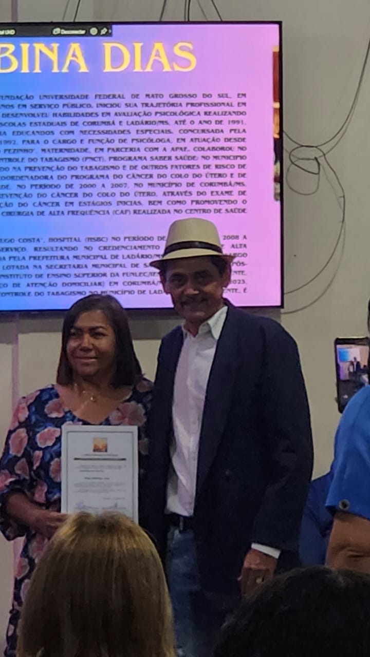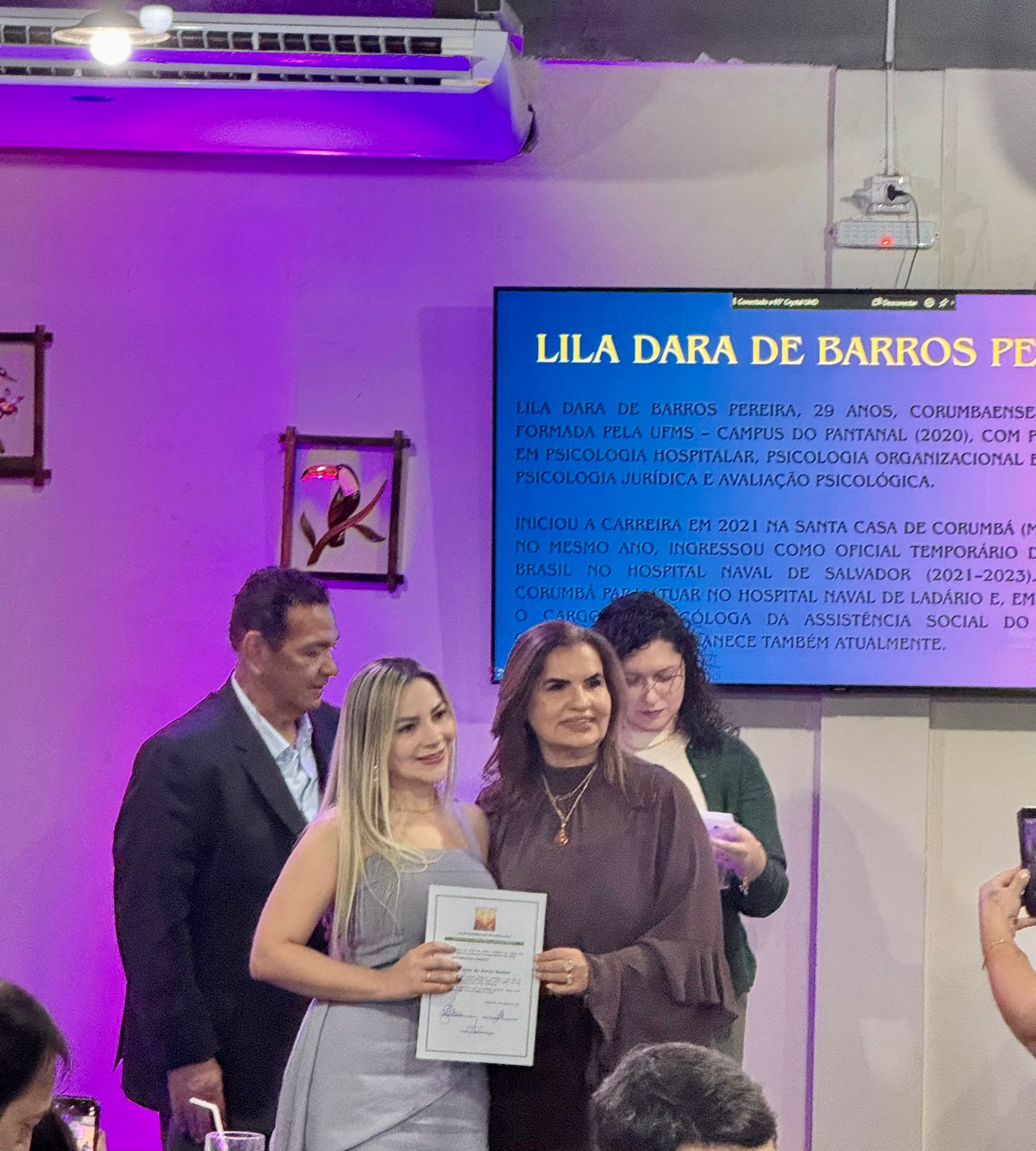 A filha Laísa Lopes Batista, acompanhada de familiares vindos de outras cidades, recebeu do Psicólogo Juvenal Ávila de Oliveira a homenagem, que representa o reconhecimento de sua dedicação pelos colegas e, sobretudo, pela população ladarense, com quem ela conviveu desde sua chegada de São Paulo, quando fez o curso no CEUC/UFMS, tendo decidido com seu esposo, Márcio dos Santos Batista, permanecer em Ladário.